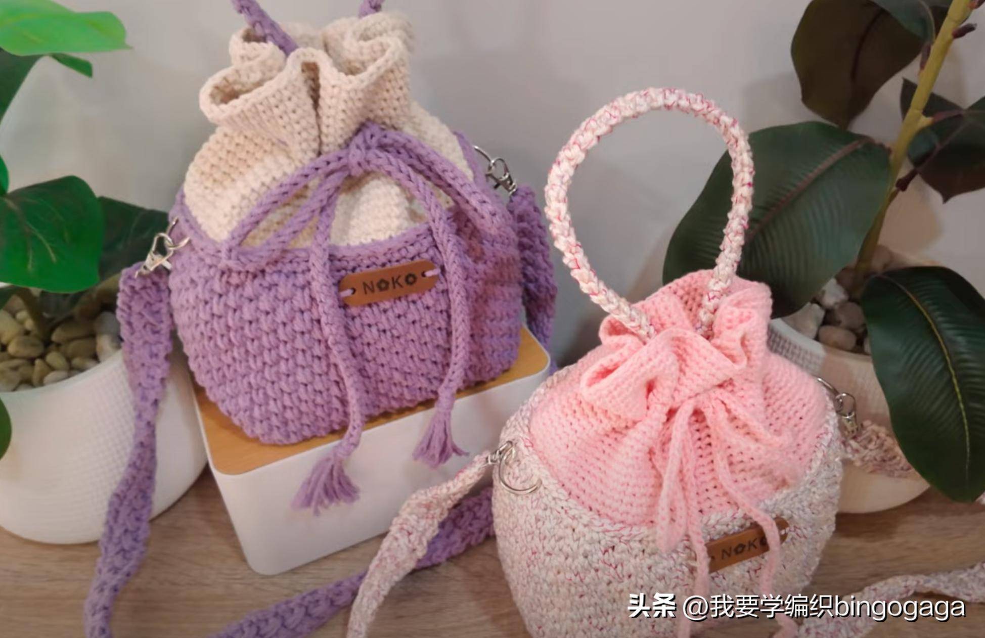 联系于其它神志的包包,桶包的容量相对比拟大一些,今天咱们就来学习一款抽绳桶包的钩法。示范用线,A线:包包主体线,3mm的丝光;B线,包口线,3mm的丝带线(心爱纯色的也不错只用一色线来钩);4.0mm及3.0mm的钩针各一根。