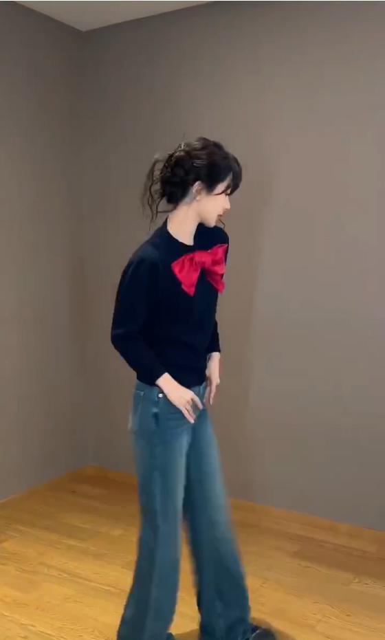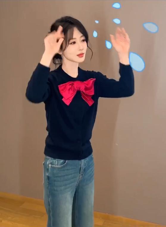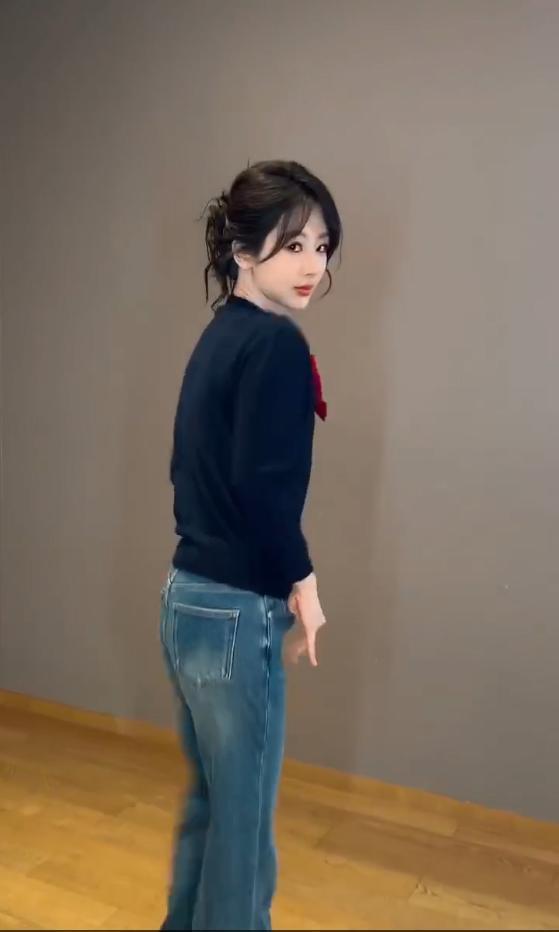 近日,杨紫也在个东说念主的酬酢平台上晒出了我方跳 “李羲承进行曲” 的视频,画面中的她身着玄色蝴蝶结毛衣搭配浅蓝色牛仔裤,跳舞虽不专科,但全情参加,昂扬感皆备,还幽默走漏 “抱歉了,诸君” 。