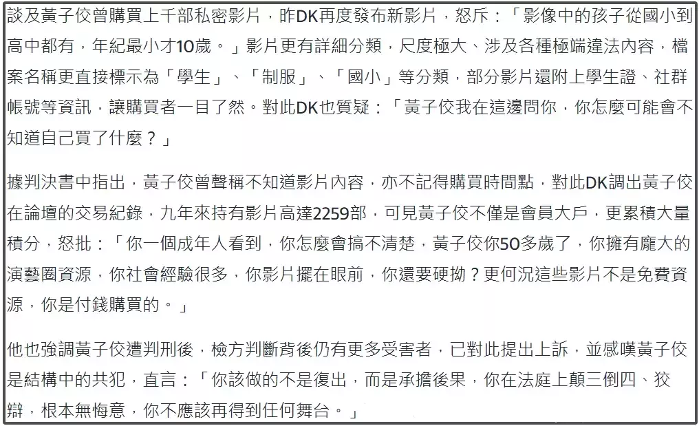 很快,黄子佼和他的夫人孟耿如遭到了全想法胁制,有东谈主翻出了黄子佼的判决书,让全球紧记黄子佼有何等恶劣——他九年技术用钱买了2000多部坐法影片,被拍的孩子最小的只好10岁!