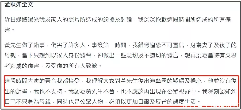 眼见着本身文娱圈奇迹被触及,黄子佼的夫人终于出来语言了,暗示我方不维持黄子佼复出,他往常不会也不应该复出,试图用丈夫历久退出文娱圈一事浇灭网友肝火,确保我方还有混圈契机。