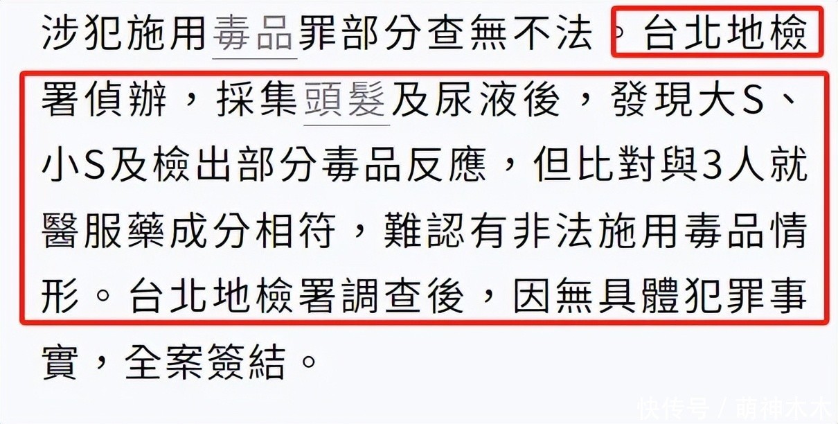 后续大小S出头否定了黄子佼的爆料,不外凭据台媒报谈,徐家姐妹体内检测出了药物因素,只不外她们拿出大夫处方辩称是正当服用。