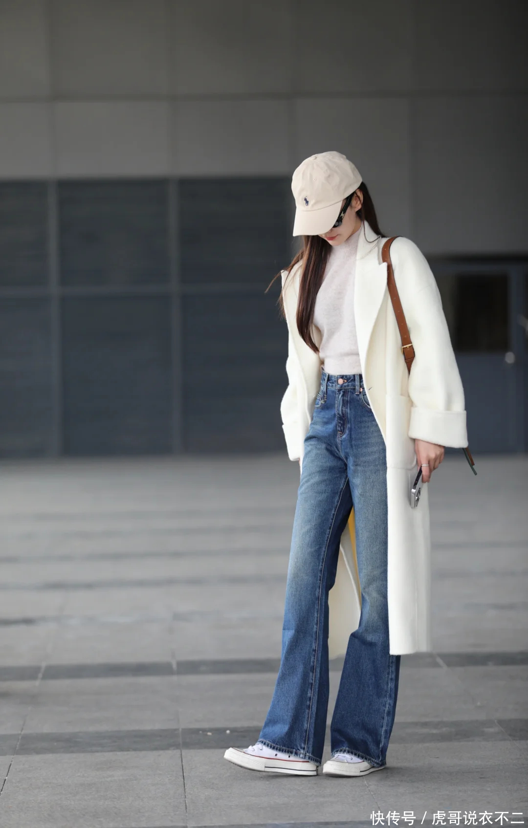 牛仔裤与帆布鞋看成早春的经典CP,不仅易于搭配且极具减龄后果。在穿大衣时沿用这一搭配念念路,不仅能够冲破千里闷感还能增添芳华活力。但需要注主义是,牛仔裤的版型不宜过于宽松,直筒或烟管裤型与修长帆布鞋的组合更容易塑造出利落的腿线后果。