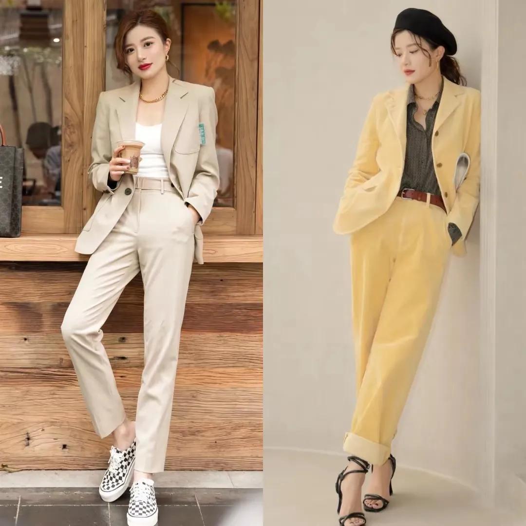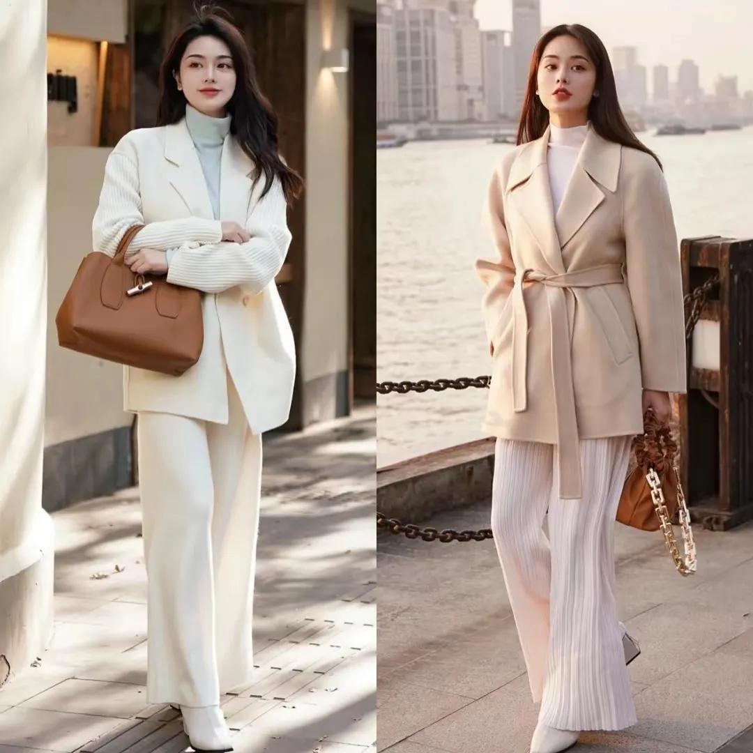 关于我们强横行家女性来说,身体比例详情是没法和模特或者女明星忘形,思要变得更干练,我们不错遴选挺阔有型的西装裤,举例底下这两套西服套装,穿在身上之后,扫数东谈主就显得十分的干练,很符合职场女性,不外底下左边的这套的裤子才属于九分裤,把脚踝流露来,这么穿才不压身,若是你的裤子比拟长的情况下,尽量把裤脚挽起来,酿成雷同九分裤一样,这么的穿衣打扮才会排场。