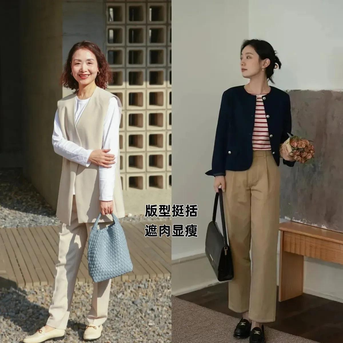 年岁不同,穿衣打扮天然有很大的区别,若是等我方到奔五奔六的年岁,这个本事身体势必会有所走样,原因很浅易,到了这个年岁段,身体的推陈出新变得温情,管不住嘴,迈不开腿的情况下,腰间详情会多了许多赘肉,何况有小肚腩缓缓退出,这个本事就尽量不要穿紧身款的衣着,遴选稍稍宽松的衣着样式更遮肉显瘦,举例底下左边的这位中年女性,遴选了一件无袖的马甲外衣,内搭白色的打底衫,加上一款西装裤,脚踩一对乐福鞋,衣着裤子挺阔有型,很符合我们中年女性。