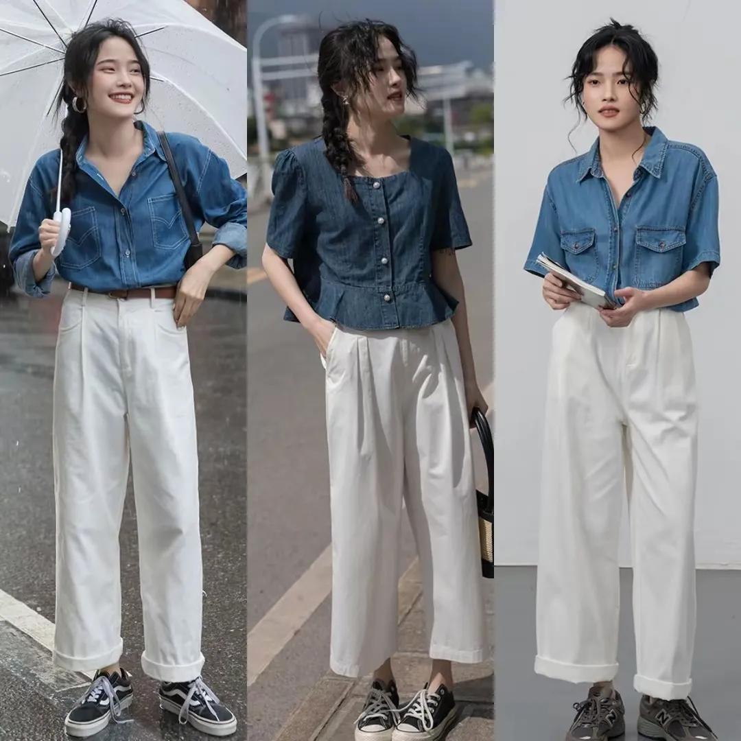 在这个春季,思让我方的穿衣打扮比拟有活力,显得年青貌好意思,推选全国遴选白色的长裤,白色的裤子不错说是最为百搭的色彩,穿在身上之后,不会显得千里闷,举例底下平直遴选牛仔衬衫,搭配上白色的直筒裤,脚踩一对帆布鞋,仙女感平直扑面而来。