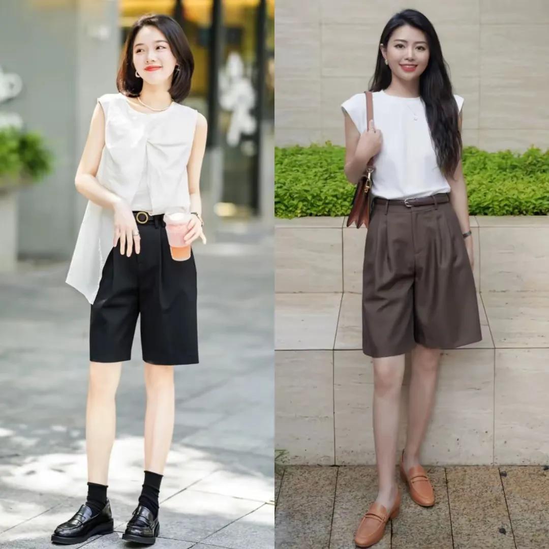 遴选用百慕大短裤来穿搭的情况下,整套穿衣配色也尽量不要花哨,若是卓著三个色彩会显得花里胡梢的不够排场,照旧推选全国遴选纯色系的来穿搭,比如白色的短袖搭配上咖色的百慕大短裤,脚踩一对棕色的乐福鞋,这么的穿衣造型显得年青前锋。