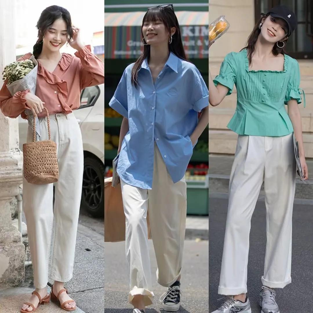 我们还不错遴选粉色衬衫,蓝色衬衫以至是绿色衬衫来搭配白色的长裤,脚踩一对凉鞋,帆布鞋,通顺鞋齐透彻莫得任何问题,且这么的穿衣打扮很符称身体,并不是那么丰润的女性穿搭,小宽松的衬衫搭配上白色的长裤,扫数东谈主会比拟有精神,不会使得穿搭者的身体比例显得过于干瘪。
