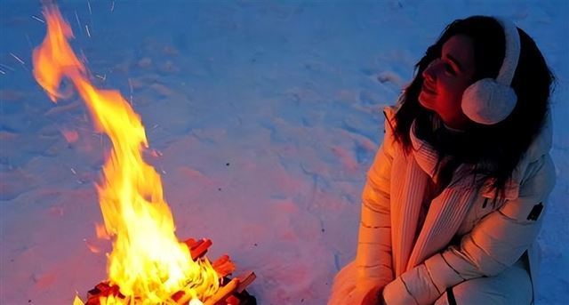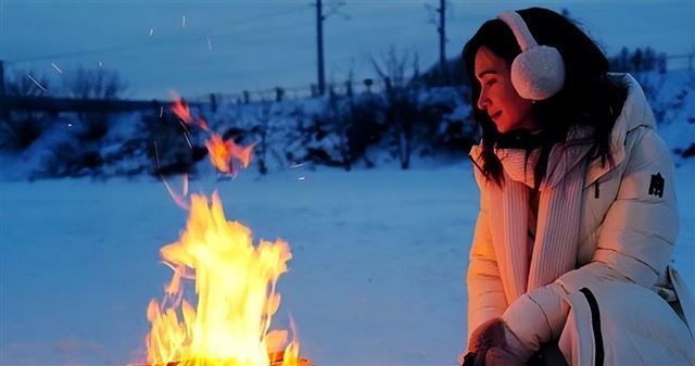 她在火堆旁静静烤火,渴慕蔼然的同期,更显郑重与优雅。