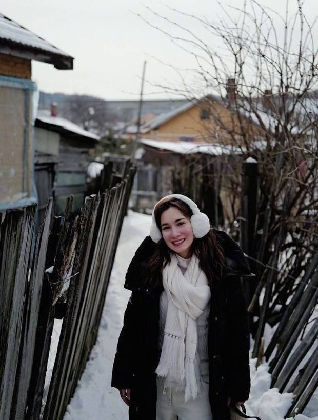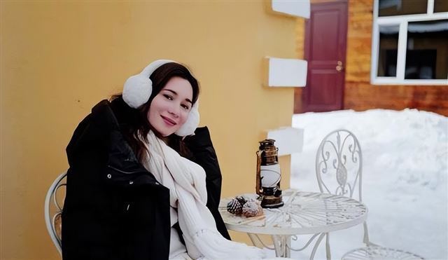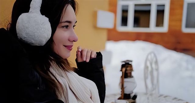 在一张像片中,卢靖姗戴着御寒的耳套,仿佛孩子般欢然其乐。