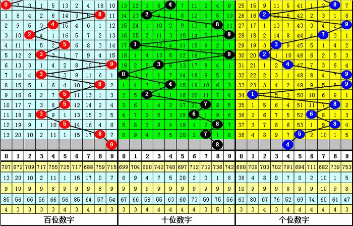 上期第二位奖号为:7,终止2期之后开出,推崇相对热,前10期该位热码开出次数较少,本期瞩目该位热码徐徐回暖,形态号码8。