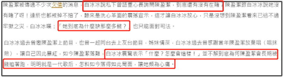 因为赌博,陈盈洁反复负债,丈夫无奈礼聘和她区分,债务越滚越多,陈盈洁就去骗,伪造亲姐妹签名给我方担保去借钱,因为作秀触违治安,70岁了还要蹲监狱。