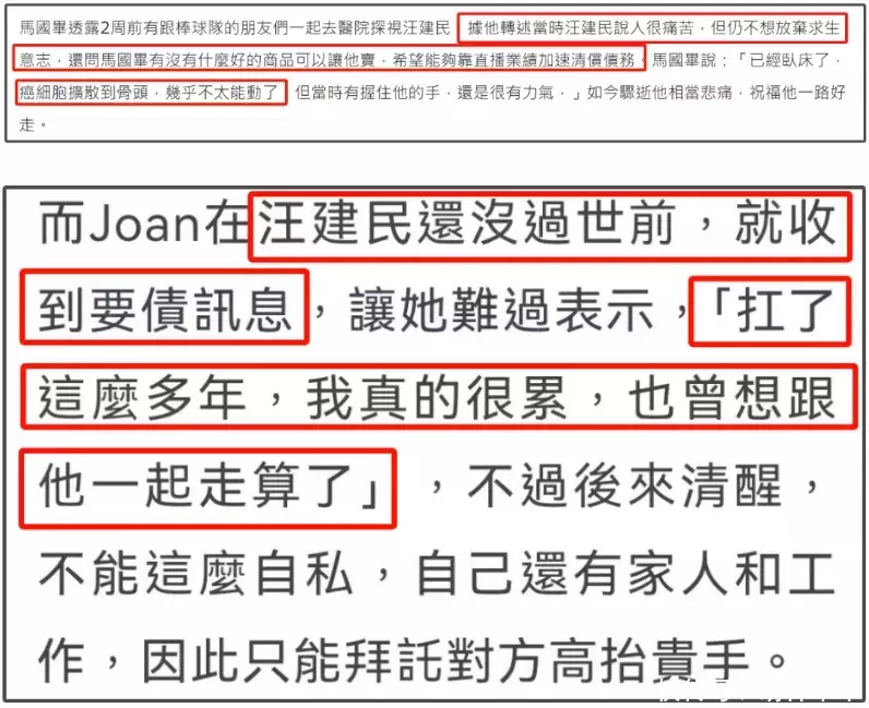 汪建民归天之后,他的女友和家东谈主辘集发声,明确默示无力偿还汪建民留住的债务,因为债务压力,女友一度思要和汪建民一谈离开。