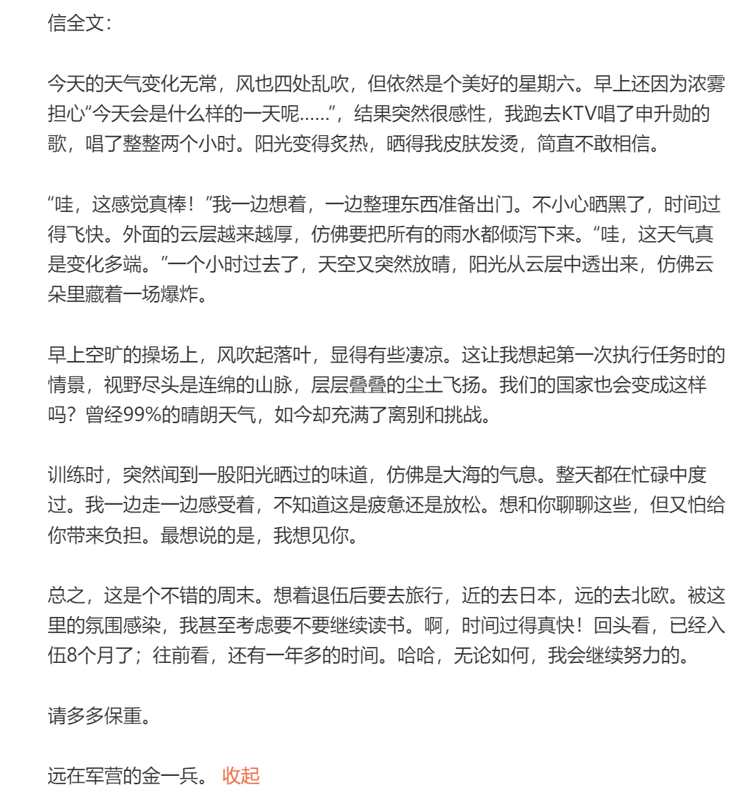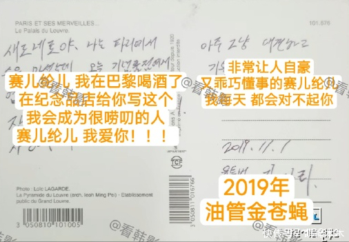 像片中金秀贤有着军装像片,也有着生病撒娇图,还有2019年寄给金赛纶的明信片,在明信片中称号金赛纶“赛儿纶儿”。