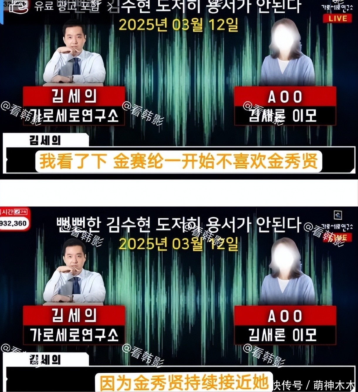 金秀贤跟已故金赛纶事件越演越烈,韩媒“横竖说合所”把金秀贤锤到无处遁形,恋爱期间线、亲密合影、亲笔信件等等,一波接着一波狂锤,把金秀贤透澈推向了风暴中心。