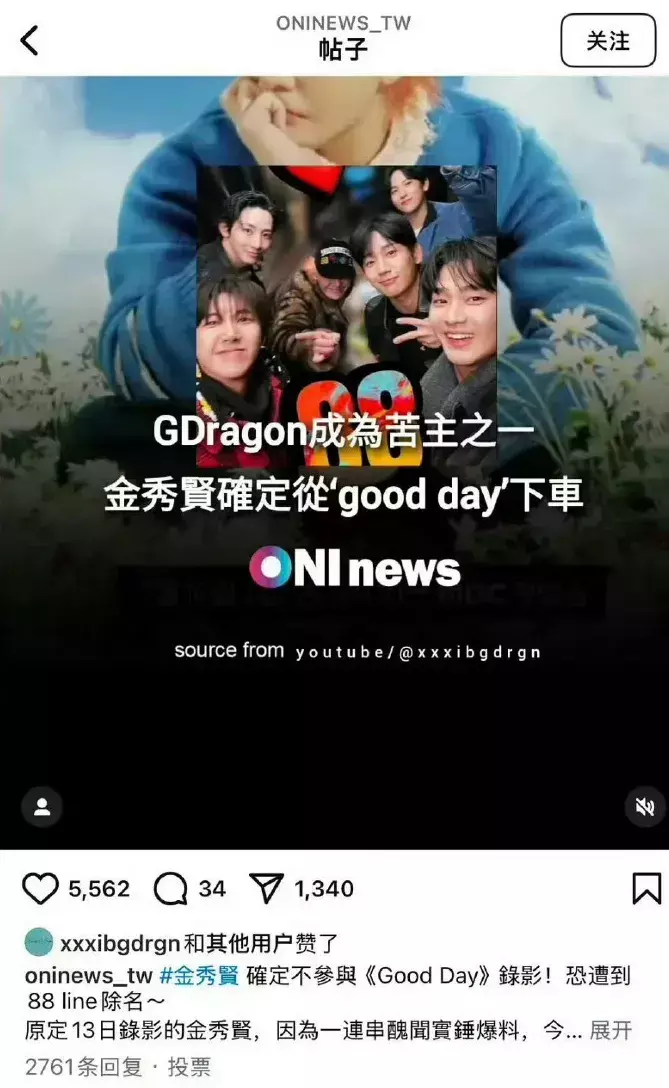 自丑闻曝光后,除了少数相助商沉默撤下宣传,大部分品牌及相助单元皆处于不雅望作风中。为了挽救脚下的不利场面,金秀贤在千里默四天之后,公关一忽儿启动发力了,一些对于“权志龙笃信金秀贤,综艺照常录制”、“迪士尼剧集拍摄也没取消”的音问启动出现,吓得综艺《Good Day》节目组赶快露出还在阐明中。