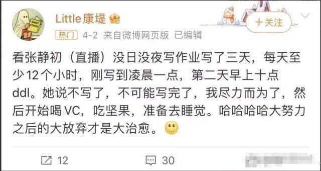 在直播中,她素颜戴着眼镜,手边放着大茶杯,边看书边和困乏作斗争。这一画面与许多正在为考研奋发的学生们险些一模一样,甚而有网友驳斥说念:“明星备考也会油头满面,和我查验时的景象一模一样。”