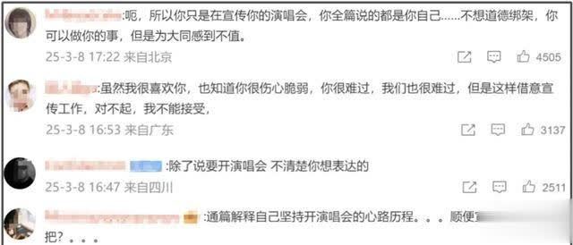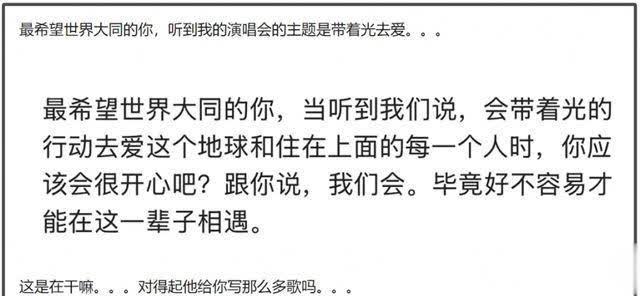 全球但愿她能尊重死一火的好友,将怀念死一火知心和论述演唱会心途经程这两件事分开作念。