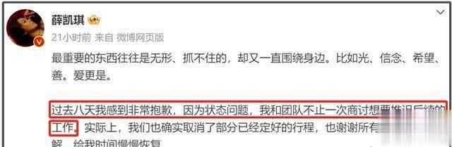 从薛凯琪发布的长文中不错看到,她领先提到我方曩昔八天的景色并不好。