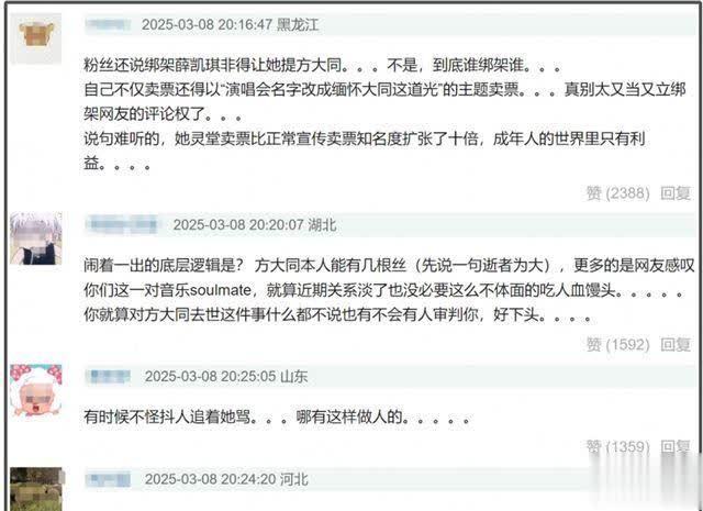 有网友直言“说句从邡的,她灵堂卖票比平日宣传卖票知名度膨胀了十倍,确切成年东谈主的宇宙里只须利益”,以致有东谈主认为薛凯琪是在吃东谈主血馒头。