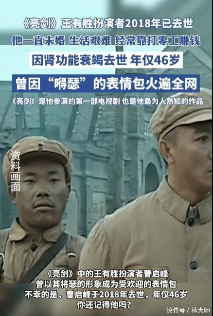 近日,一条对于《亮剑》演员曹启峰的旧闻倏得登上热搜!这位在剧中因“王有胜雠校”感情包走红的演员,竟早在2018年因肾枯竭离世,长年46岁,只身且生前贫穷荆棘。音问曝光时,他饰演的“王有胜”仍在短视频平台被千万网友使用,而实践中他的墓碑早已覆满青苔。