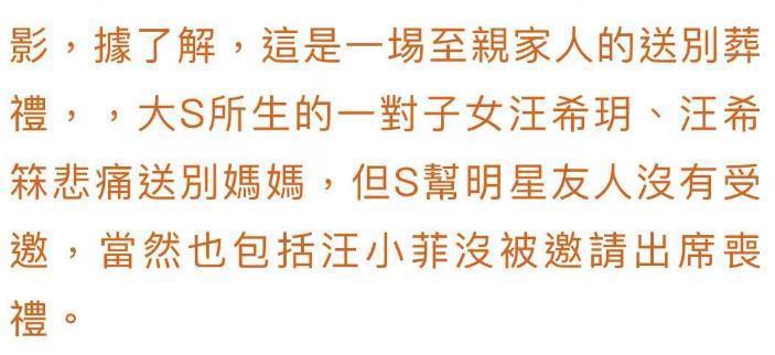 从台媒曝光的视频中不错看到,莫得汪小菲的身影,也莫得之前参加大S纪念会的大S的好友们,可见S家这一次很低调,只让嫡亲送别。