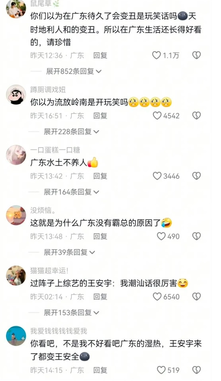 王安宇的全新造型让他看起来与广东的地域性情如胶如漆,仿佛他即是故事中走出的腹地东说念主。对此,粉丝们展现出了他们独到的幽默感,纷繁在酬酢平台上留言,戏谑地称王安宇照旧“融入广东”,甚而是“入乡顺俗”,俨然一副纯正广东东说念主的面目。这些敬爱的磋商不仅流显现粉丝对王安宇造型变化的关怀,也响应出了他们对偶像深厚的情感与支柱。