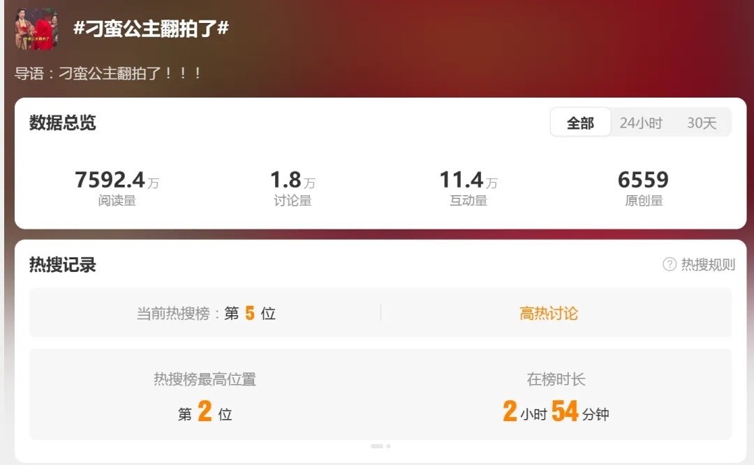 死字发稿,该话题微博热度达7592万,互动量超11.4万,同期登上百度热搜榜,抖音高潮热门。