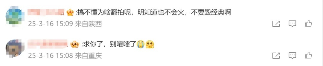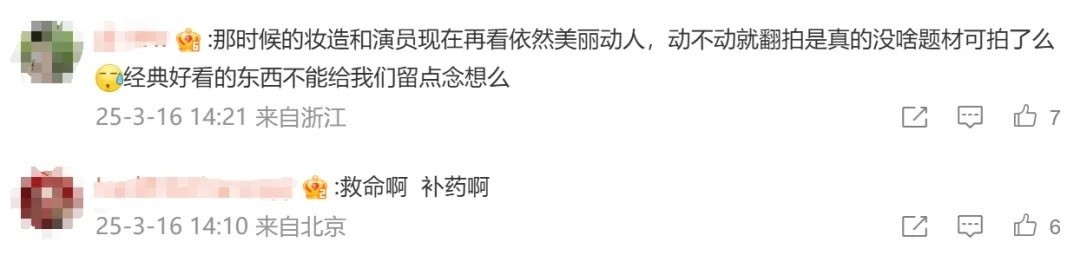 不少网友对该剧翻拍合手不辅助的格调,“咫尺一黑……”“什么剧皆翻拍,拍又拍不好,何须呢?”“我合计老的好意思瞻念为什么要看新的,重温一遍不就可以了。”“别毁我童年啊!”