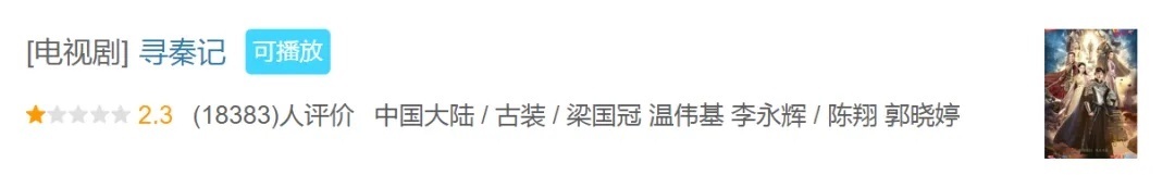 2019年版的《新白娘子外传》被网友评为“滤镜和殊效说来话长,东谈主物看上去像开了重度好意思颜”。而新版的《寻秦记》,死字现在,豆瓣评分还不到3分。