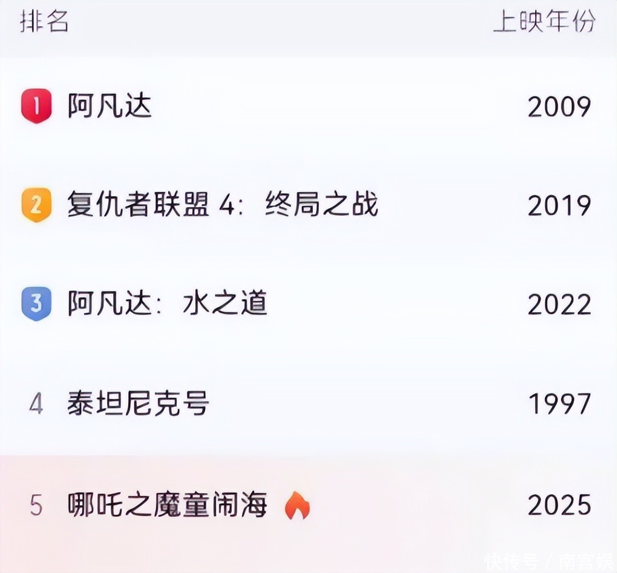《哪吒2》如今正在向第四位进攻,超过《泰坦尼克号》亦然计日而待。