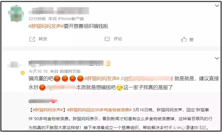 然后号称玄色幽默的事情发生了,胖猫姆妈露面回复了。