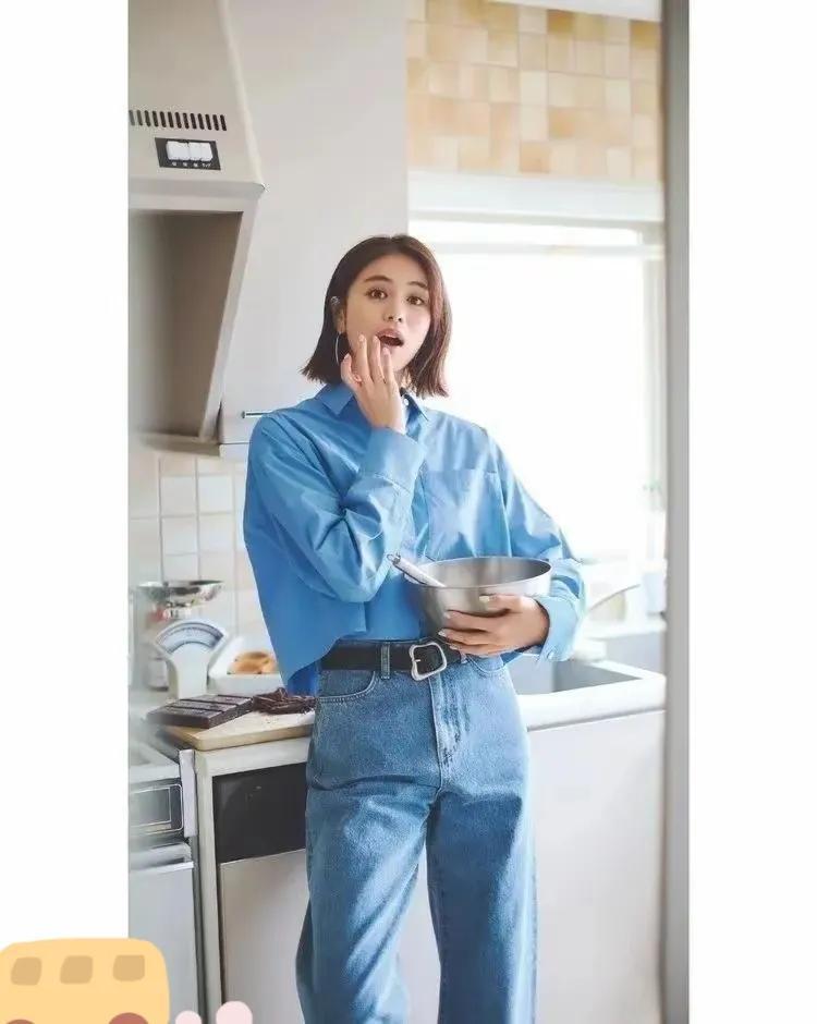 不外接管一稔心计的时候尽量接管淡色系,纯色系一稔心计不要花哨,最好实时在这个春季,我个东谈主如故蛮保举蓝色的衬衫的,十分的百搭,无论你搭配什么样心计的裙子,裤子王人很顺眼,举例底下这一套同色系的穿搭,给东谈主的嗅觉就显年青。