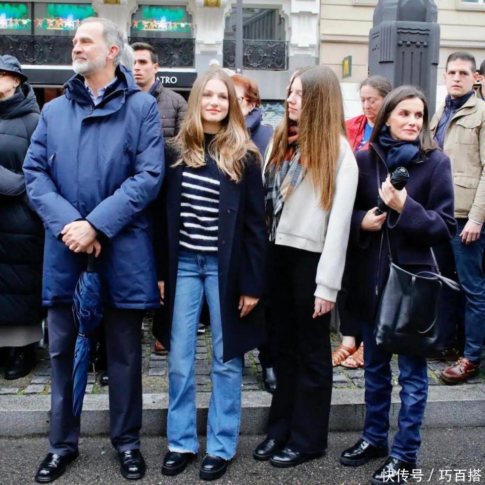 莱昂诺尔公主和妹妹沿途参不雅圭臬小镇时的造型,特殊接地气,莫得大城市穿搭时的强势霸气,有的只消暖热、粗放和接地气。