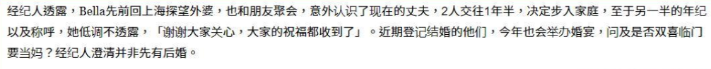 被质疑是奉子授室如斯倏得的喜信,也难免生息出了一些猜疑声,有东说念主质疑Bella是奉子授室,才会这样倏得授室的。