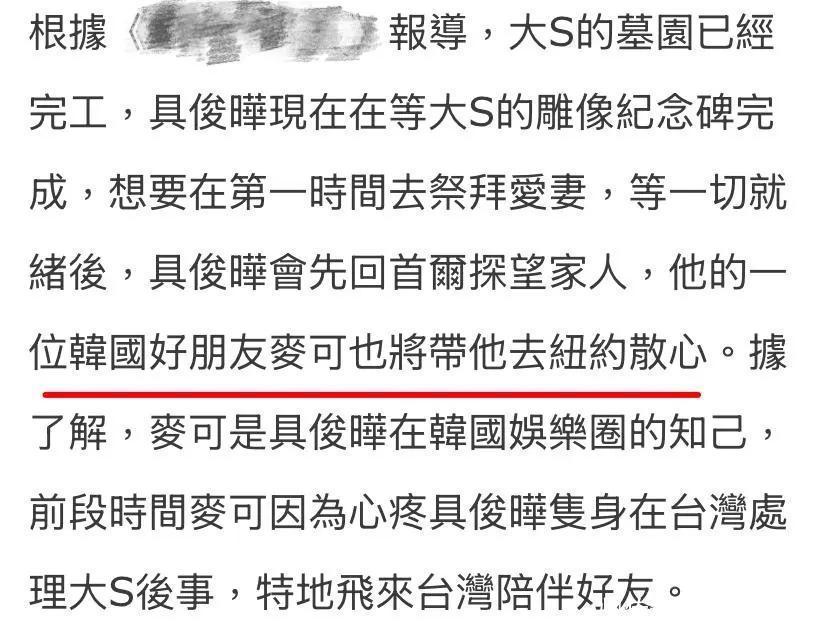 今天传来的音讯,大S的坟场齐树立完成了,听说具俊晔还要请韩国的联想师给联想,但今天又说具俊晔要和一又友切身联想。
