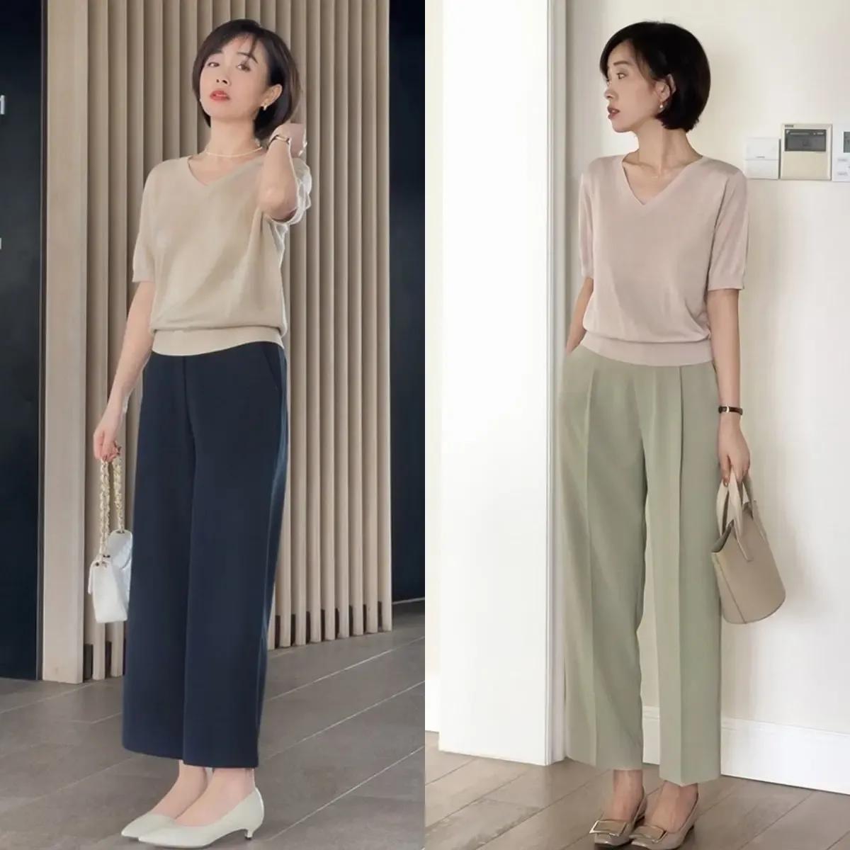 情况下来说更推选专家取舍低跟的浅口单鞋,高跟鞋来搭配最好,另外底下这两套穿衣打扮用的便是浅口的低跟单鞋来搭配上鞋子,阔腿裤和真挚短袖,全体穿衣打扮通勤致密,衣裳上班逛街聚首皆完全没问题。
