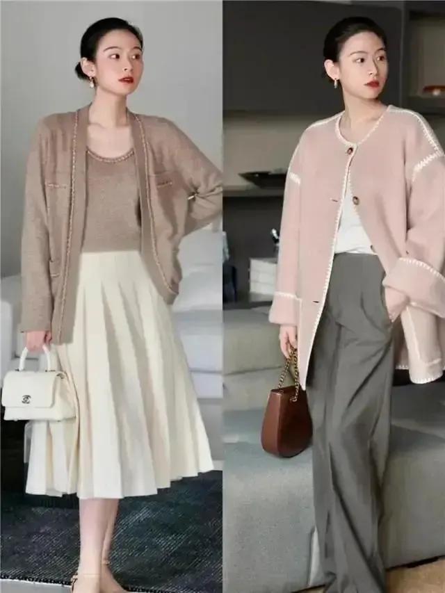 在这个春季,小香风外衣是一个很可以的取舍,相配安妥职场女性穿搭,举例底下这一件瑕瑜缠绵的小香风搭配上卡其色的西装裤,脚踩一对玄色的高跟鞋,上短下长的搭配,使得穿搭者的形体比例更好,领有修长径直的好意思腿,况且整套穿衣打扮通勤致密。