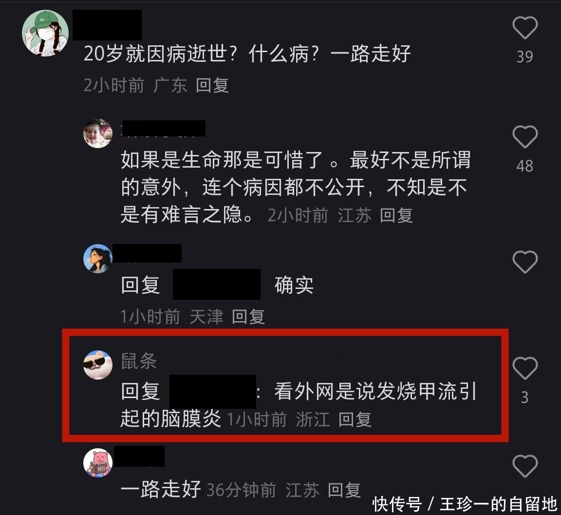 有网友说他从外网看到诗琳的死因是甲流引起的脑膜炎。