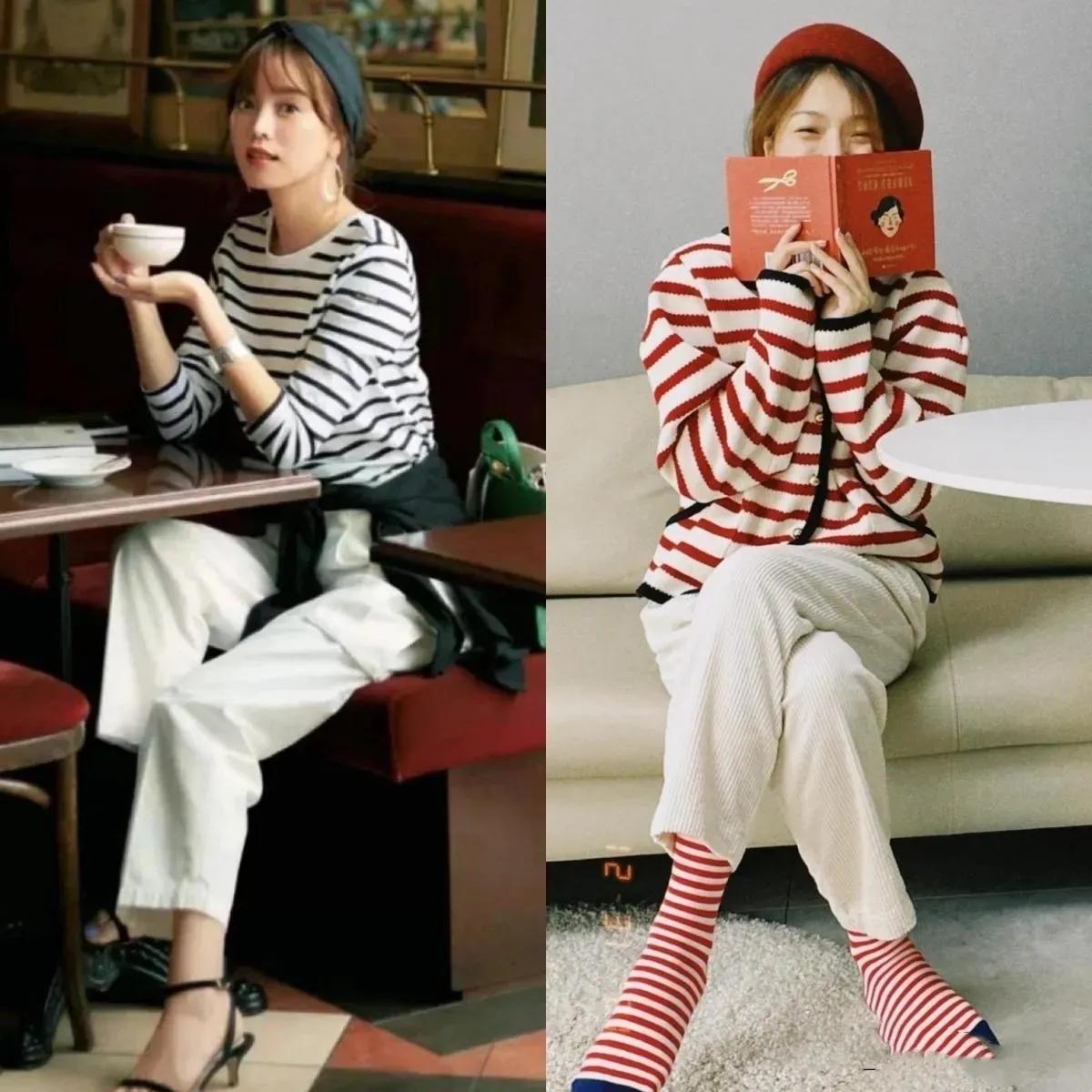 有的时候我们穿衣配色照实不太稳妥遴聘花哨的穿着,举例你从彩色的印花的穿着穿在身上之后很容易出错,显老显村炮,我们要是合计穿衣打扮用纯色系的鬼单调的情况下遴聘条纹的穿着单品是一个很可以的遴聘,我们看底下,无论是横蛮条纹如故红白条纹的赤诚穿着单品搭配上白色的九分直筒裤,呈现出来的成果王人很洋气。