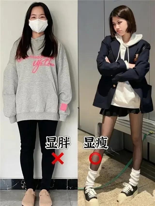 平常情况下,庸俗群众女性如故会遴聘像右边的这位树东谈主一样,一件灰色的卫衣搭配上玄色的紧身裤,瞬息就剖析我方的身体过错,何况卫衣会宽松显胖,是以才不推选群众穿卫衣。