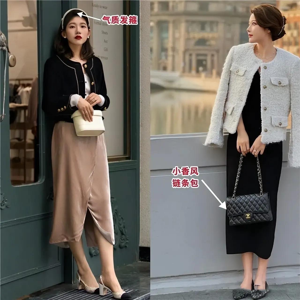 你遴聘的穿着外衣不同,穿出来的成果也有很大的分裂,举例底下遴聘的是小香风外衣搭配的,相通亦然裙子,关联词穿出来的成果就很权贵。