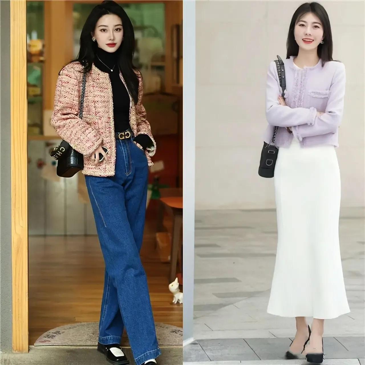 在这春季照实也蛮推选群众尝试小香风外衣的小香风外衣,属于短款,穿在身上不压身,能更好的修饰身体比例,异常稳妥小个子女生尝试,我们可以向底下这位达东谈主一样,用紫色的小香风搭配上一条白色的鱼尾半身裙,交叉双玄色的剪口单鞋,呈现出来的成果优雅多礼,年味透顶,何况很综合文静。