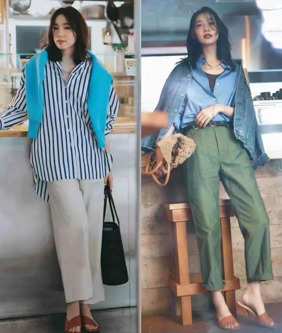 大众看底下这两套穿衣打扮就可以得出一个颠倒明确的谜底,皆不会采取很紧身的衬衫上衣来穿搭,要是是紧身款很容易把腰间赘肉,胯宽腿粗等问题皆暴涌现来,是以采取小宽松的衬衫搭配上阔腿裤,脚踩一对穆勒鞋轻概况松穿出好意思丽感。