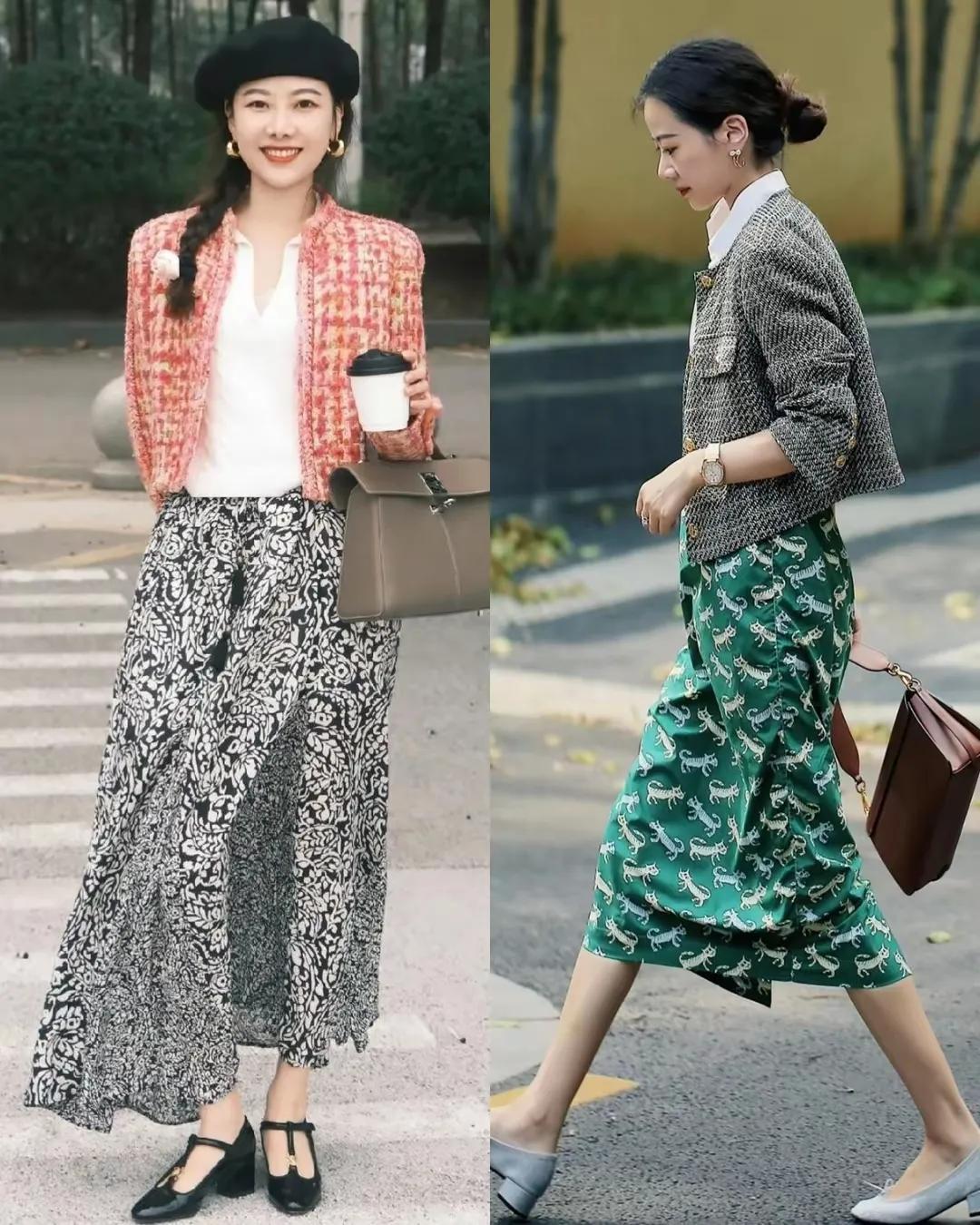 思要顺心优雅,个性所有的穿衣打扮,用衬衫和裙子搭配如实是一个很可以的采取,举例底下这位达东谈主采取一件衬衫搭配上印花的半身裙,为了让通盘造型更廓清的情况下还用一件小香风外衣来点缀,这样的话更有高贵感,更细巧好意思丽。