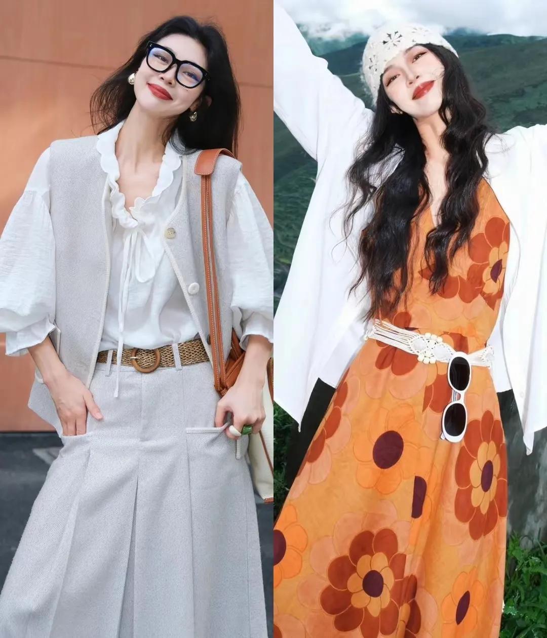 要是身段比拟偏瘦的情况下,穿穿着单品的时分也弗成过于紧身,要否则通盘东谈主会干瘪,我们也要采取一些略略宽松的穿着版型,举例一件小小的马甲外衣,内搭木耳边的宽松版白色衬衫,搭配上a字的半身裙,这一套穿衣打扮不显豁得年青,况且很修饰身段。