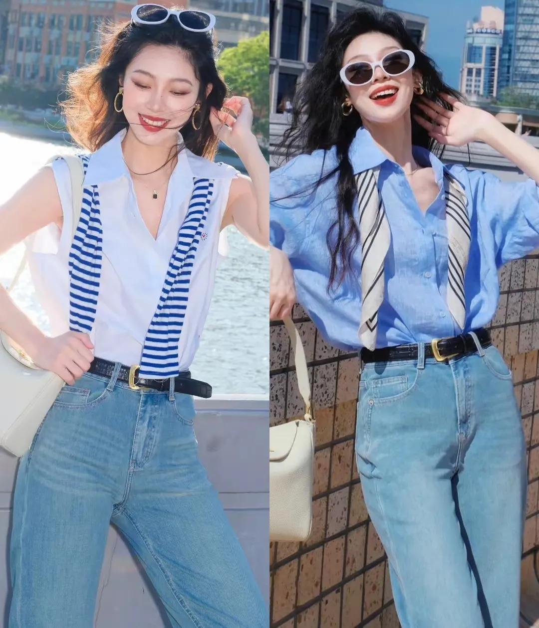 其果然这个春季,我个东谈主还蛮推选大众采取牛仔裤的,牛仔裤天生就领有前锋元素和任何穿着单品组合在一块皆比拟安静洋气,举例底下用一件白色的无袖衬衫搭配上牛仔裤或者是蓝色的衬衫搭配上牛仔裤给东谈主的嗅觉皆颠倒的洋气,百搭耐看况且不挑东谈主不挑肤色。