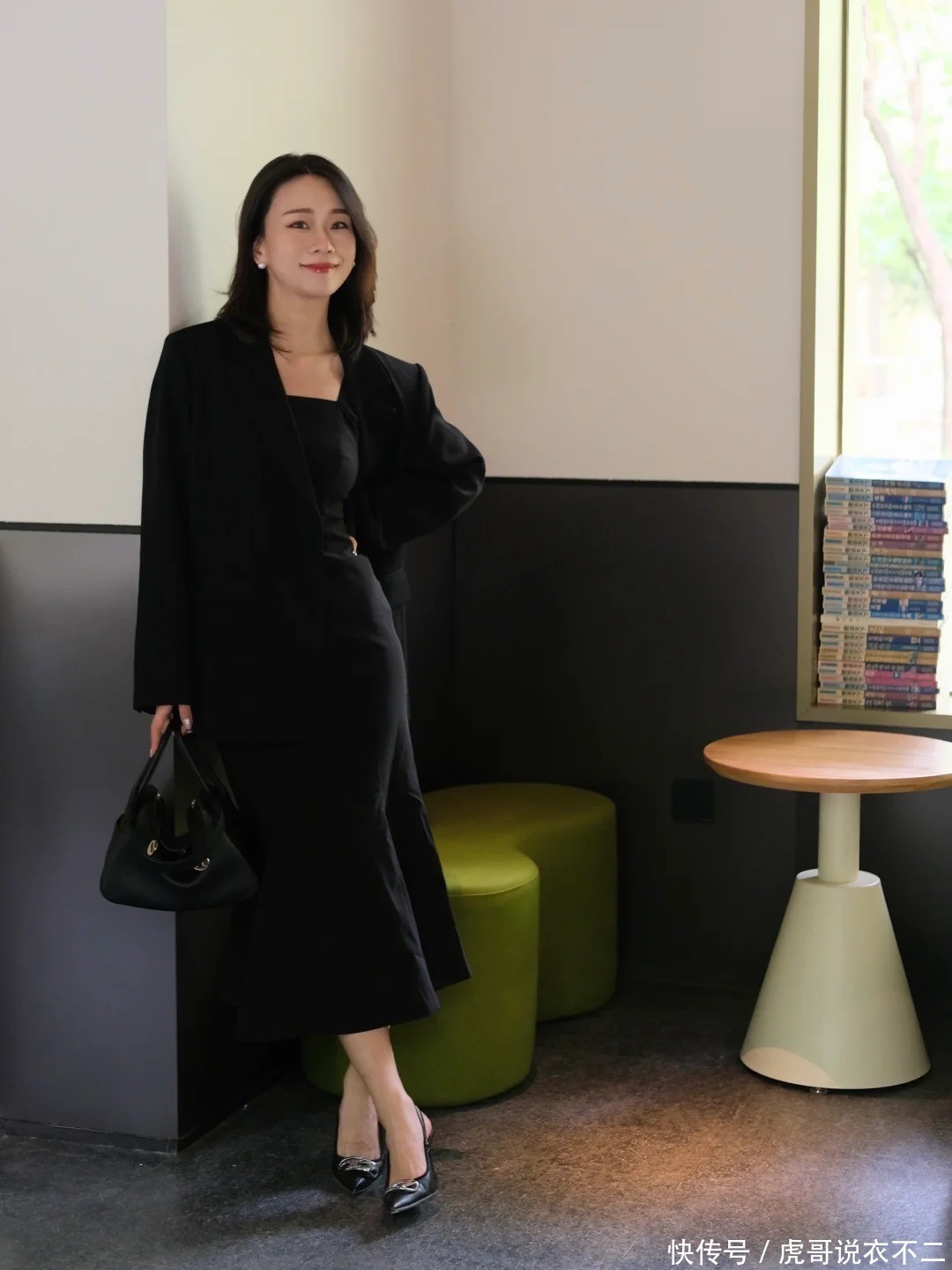 一、玄色西装置裙装:刚柔并济的职场叙事西装与裙装的碰撞,是理性与理性的齐备和谐。当挺括的玄色西装邂逅柔好意思裙摆,便谱写出职场女性的双面奏鸣曲。