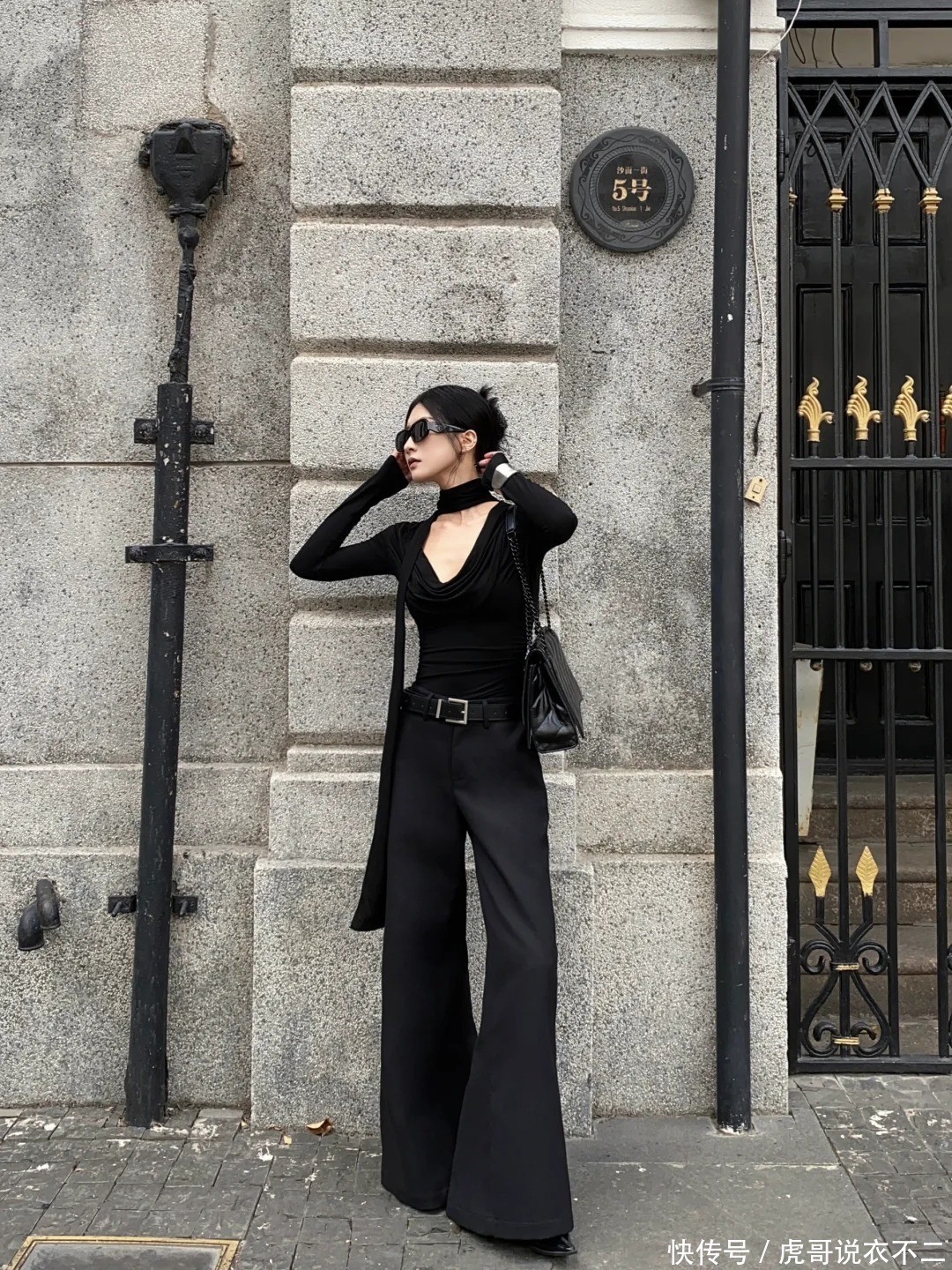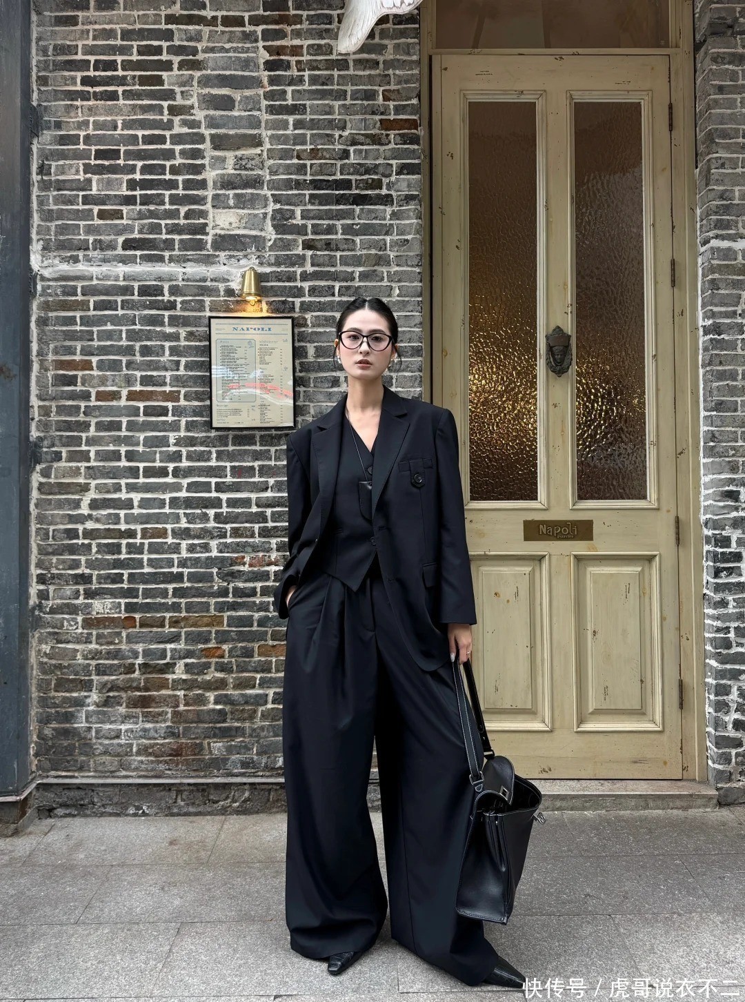 四、玄色套装:极简倡导的终极奥义当全身齐被玄色包裹,剪裁与质感便成为无声的谈话。