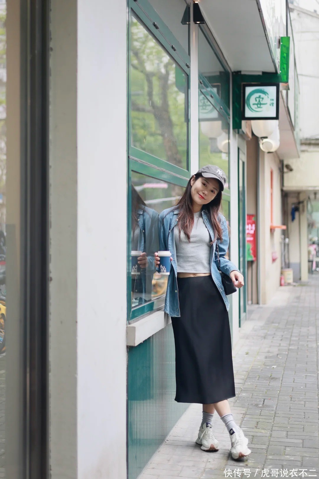 3、牛仔衬衫+玄色半裙:永不出错的经典CP