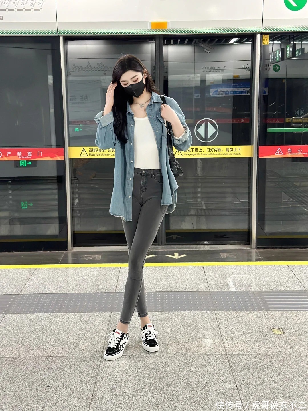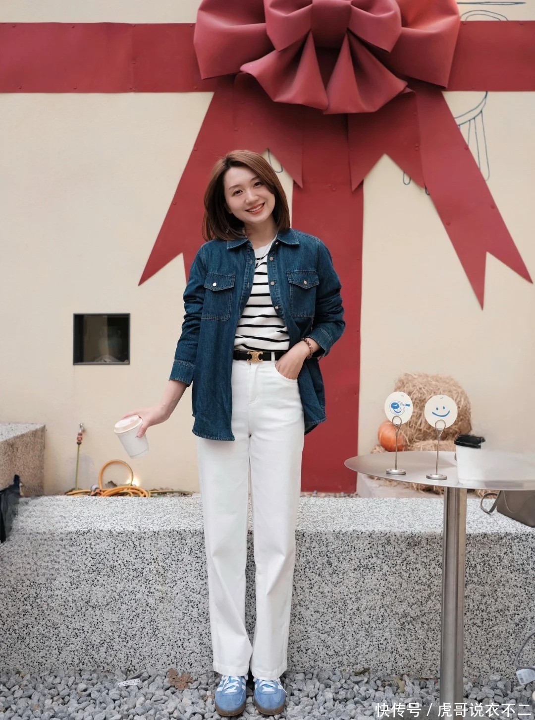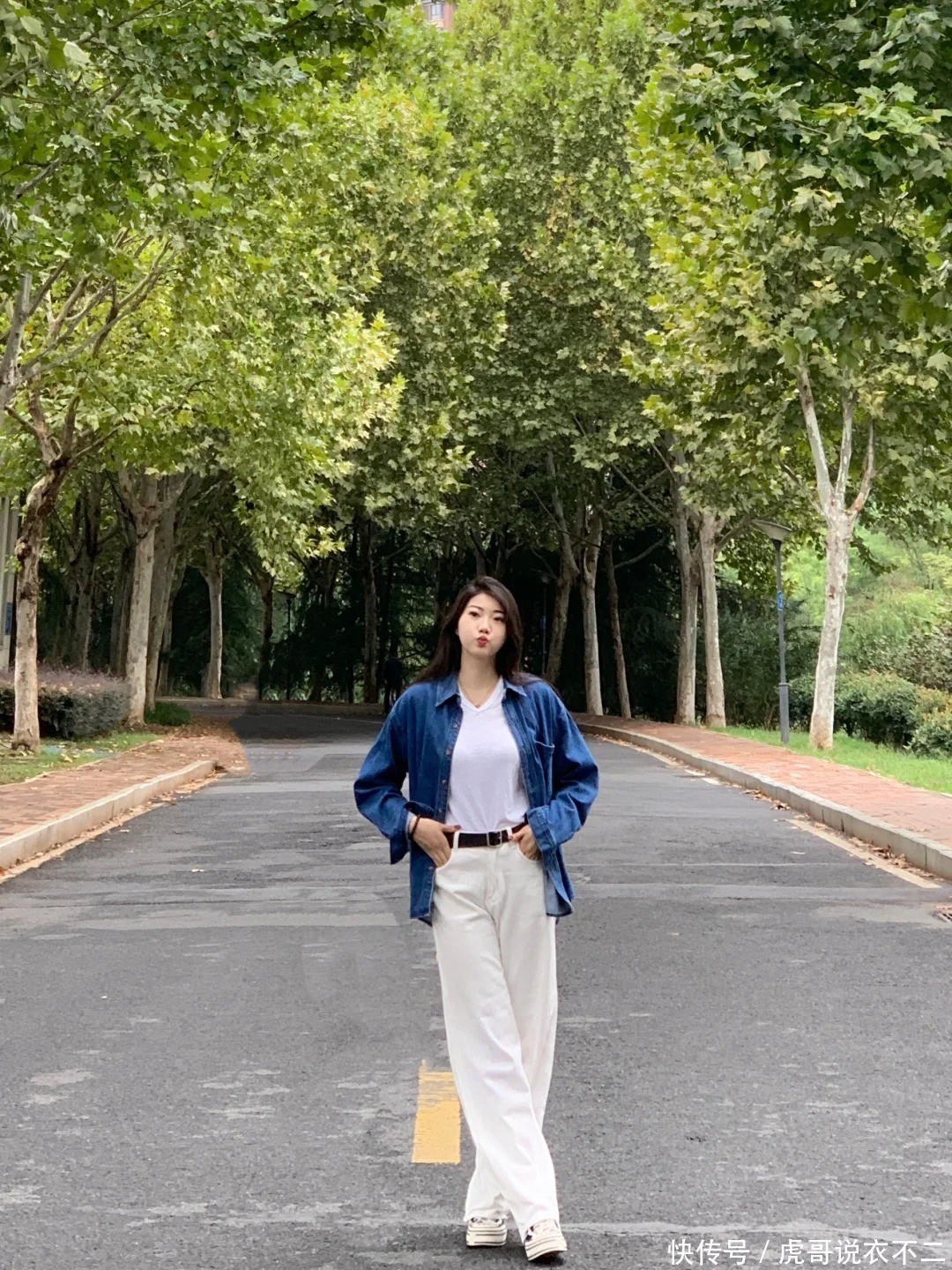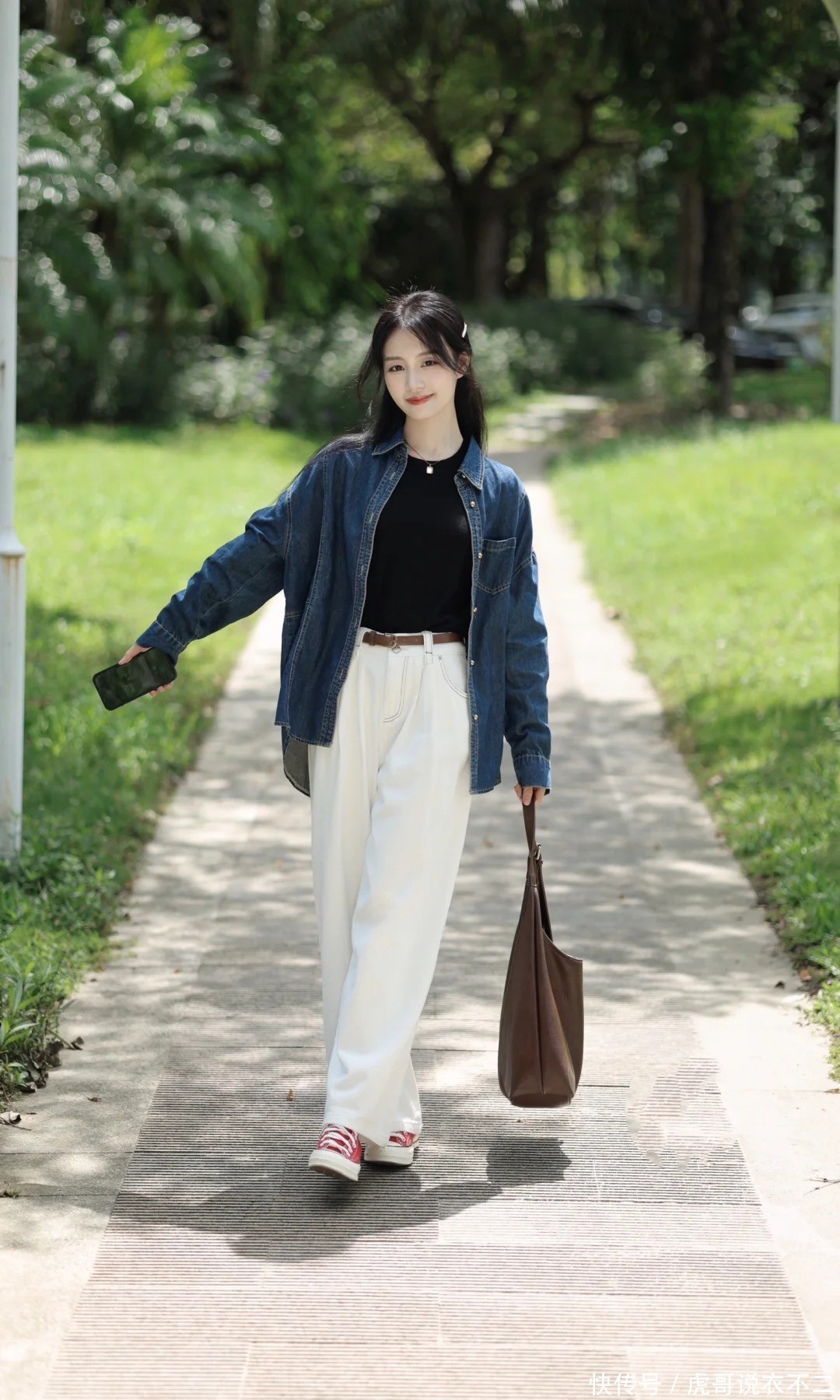 2、牛仔衬衫+阔腿裤:慵懒与气场的均衡术